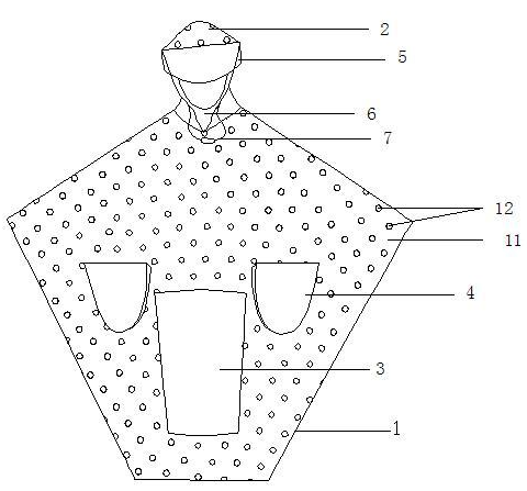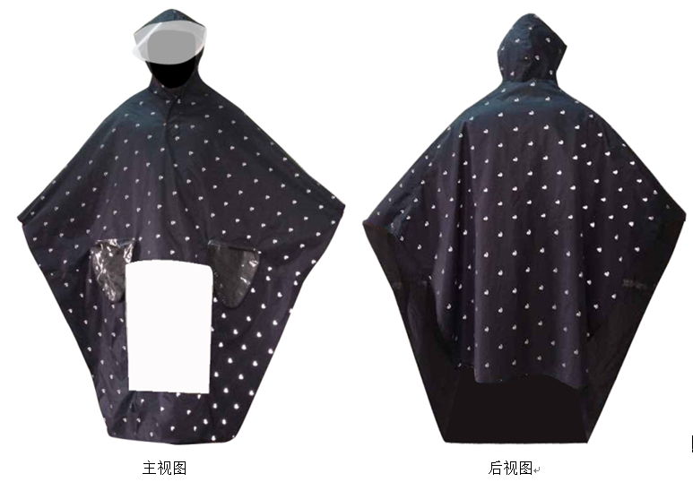 花式乐鱼在线官网雨披,包括雨披本体、领口、帽子。