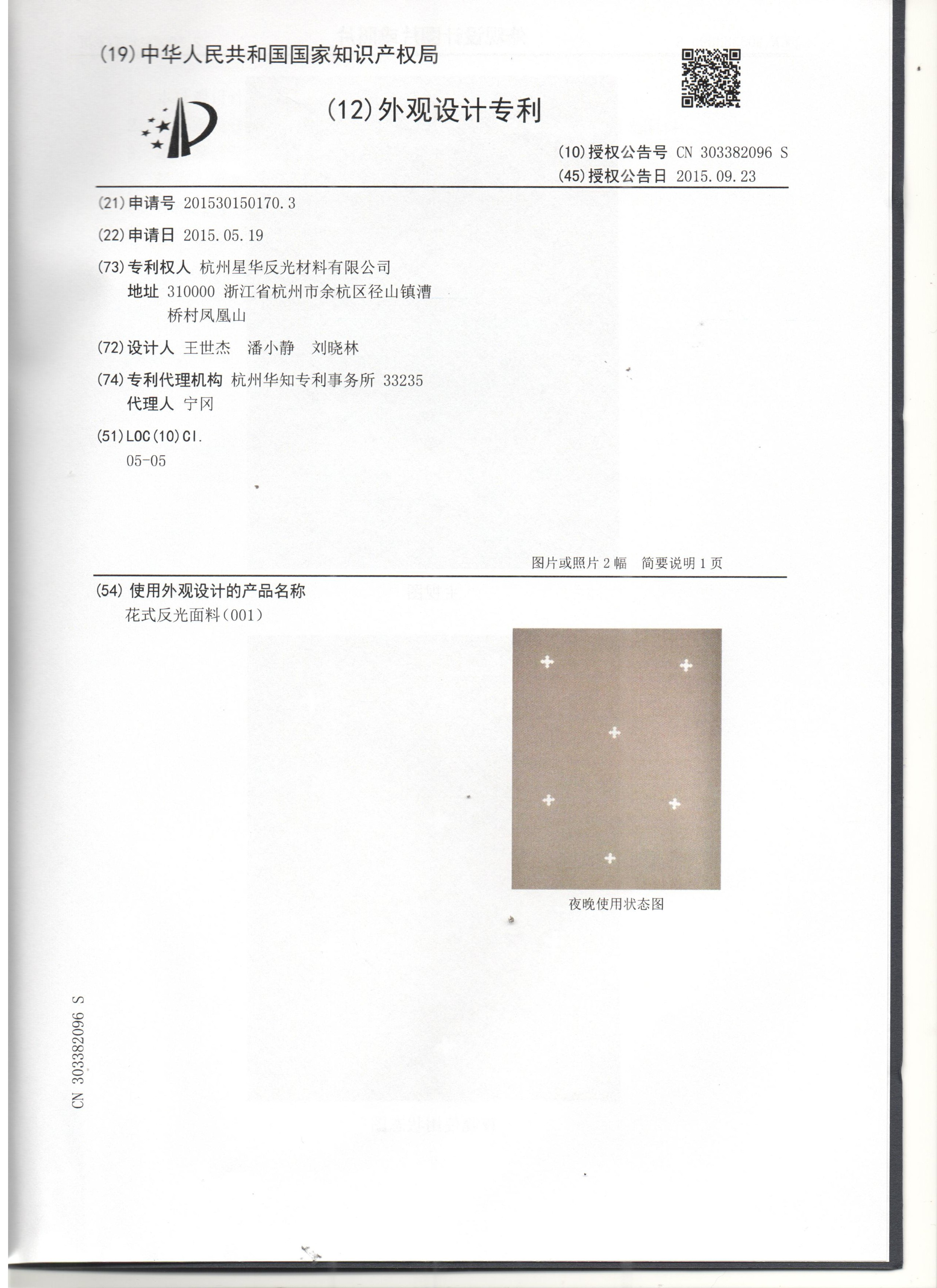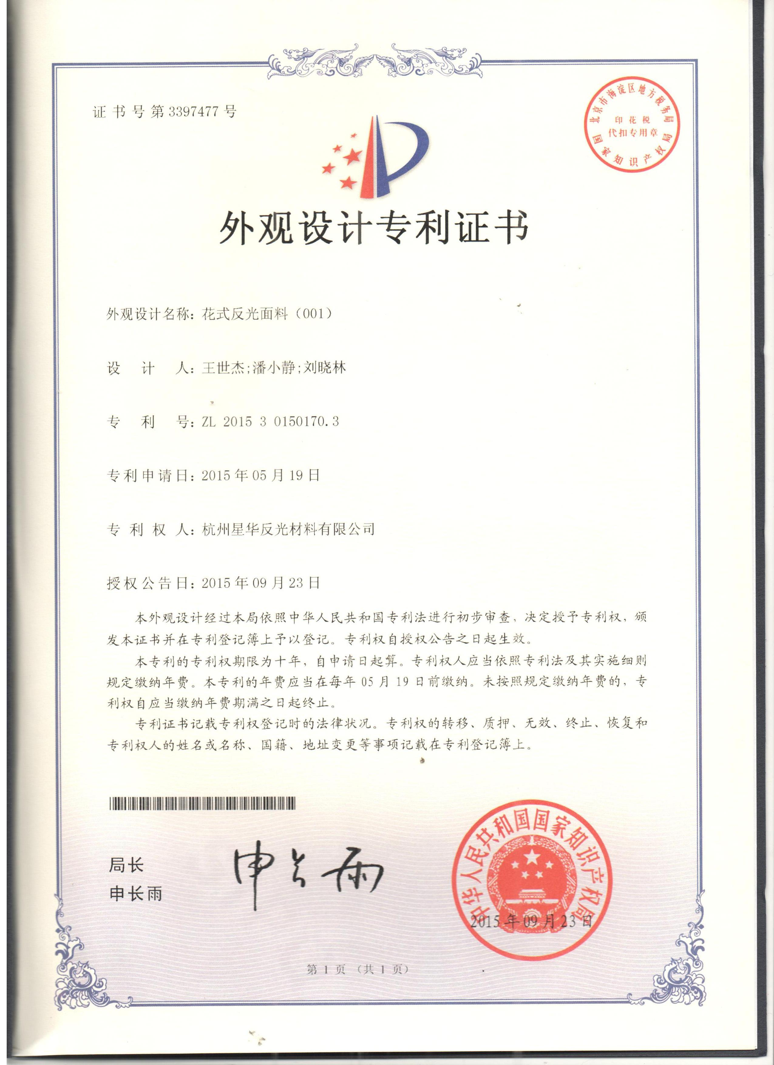 花式乐鱼在线官网面料001-实用新型证书(十字星图案)